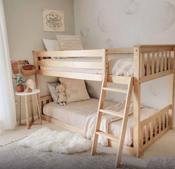 تخت کودک نوجوان دوقلو دوطبقه + روکش گیاهی