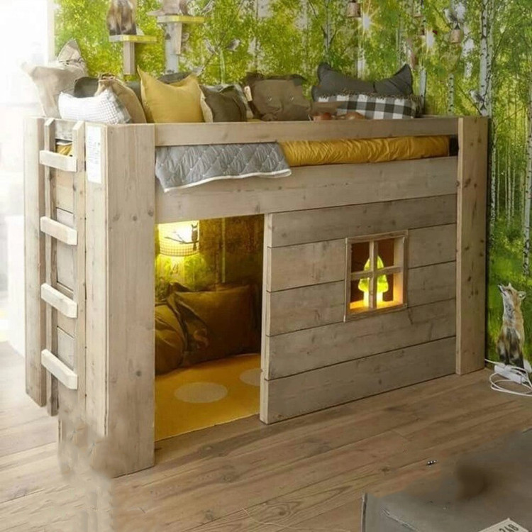 تخت خواب بالای کلبه چوبی