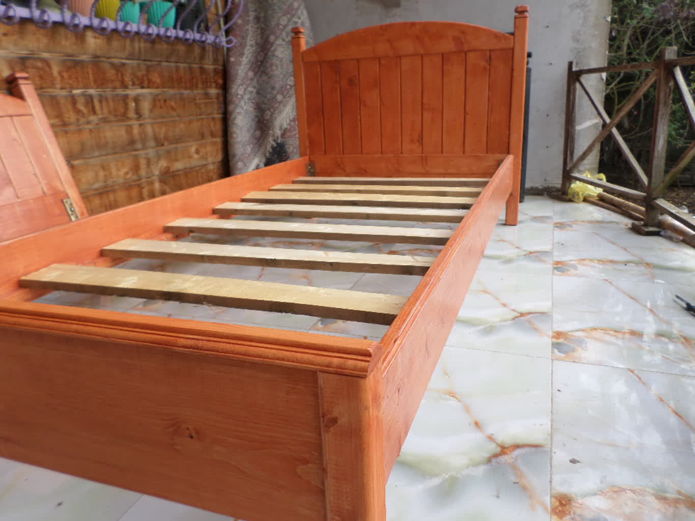 تصویر تنه درخت ماهاگونی ست که رنگ سرخ خاص خود را دارد و تخت به سفارش مشتری رنگ گره نمای ماهاگونی خورده.