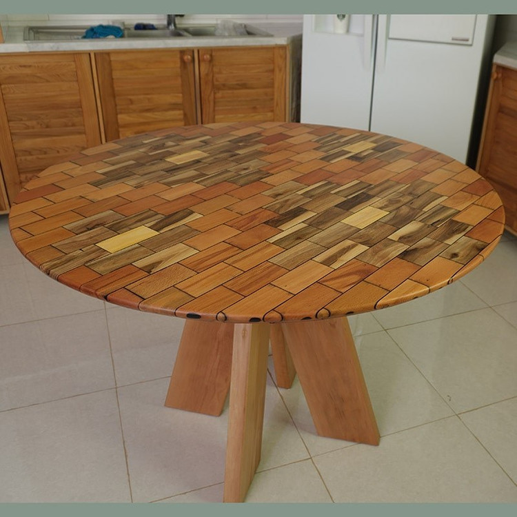شکل میز گرد چوبی مطابق تصویر می باشد ولی با چوب نراد روس بدون طرح روی میز با رنگ شاپان انتخاب مشتری
