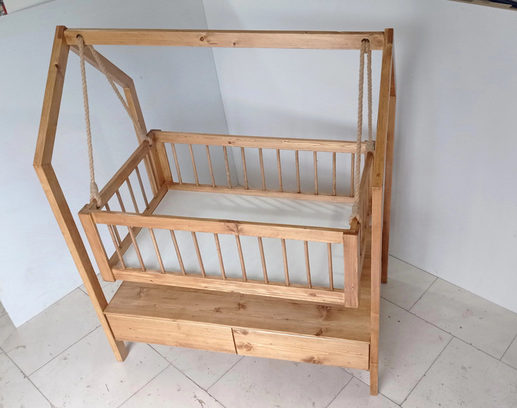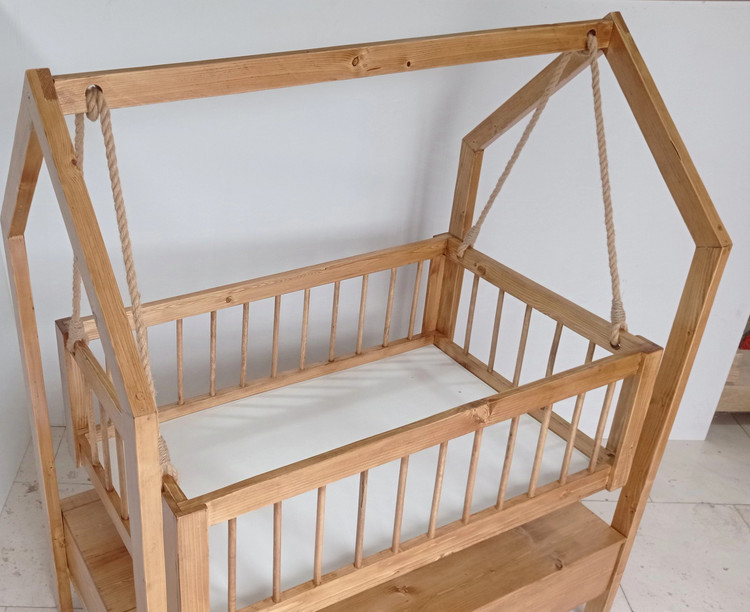 تخت گهواره نوزاد همراه کشو لباس نوزاد + روکش محافظ گیاهی