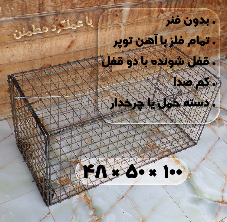 این نوع تله در ابعاد موش تا ابعاد بزرگتر به دلیل نداشتن فنر کششی برای درب، و تمام فلزی بودن با میلگرد و فنس قوی توپر، درصورت مراقبت صحیح (ضدزنگ زدن و روغن کاری قفل و لولا) خرابی ندارد و عمری ست.