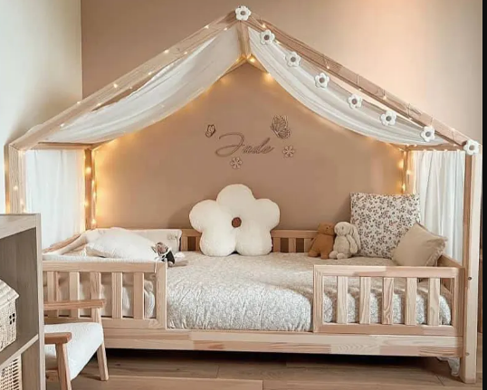 تخت کلبه ای کودک و نوجوان + روکش گیاهی
